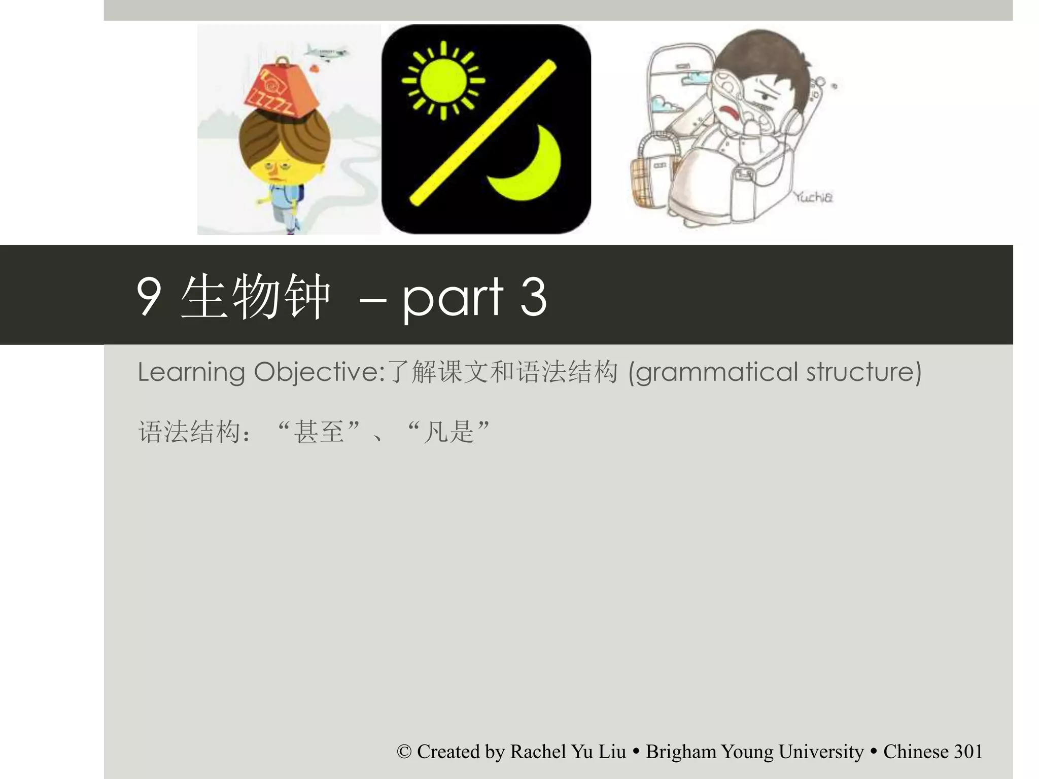 part 3 Learning Objective:了解课文和语法结构 (grammatical structure) 语法结构:“甚至”、“凡是” © Created by Rachel Yu Liu Brigham Young University Chinese 301