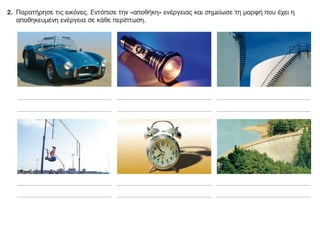 Παρατήρησε τις παρακάτωεικόνες και σημείωσε τη μορφή της ενέργειας