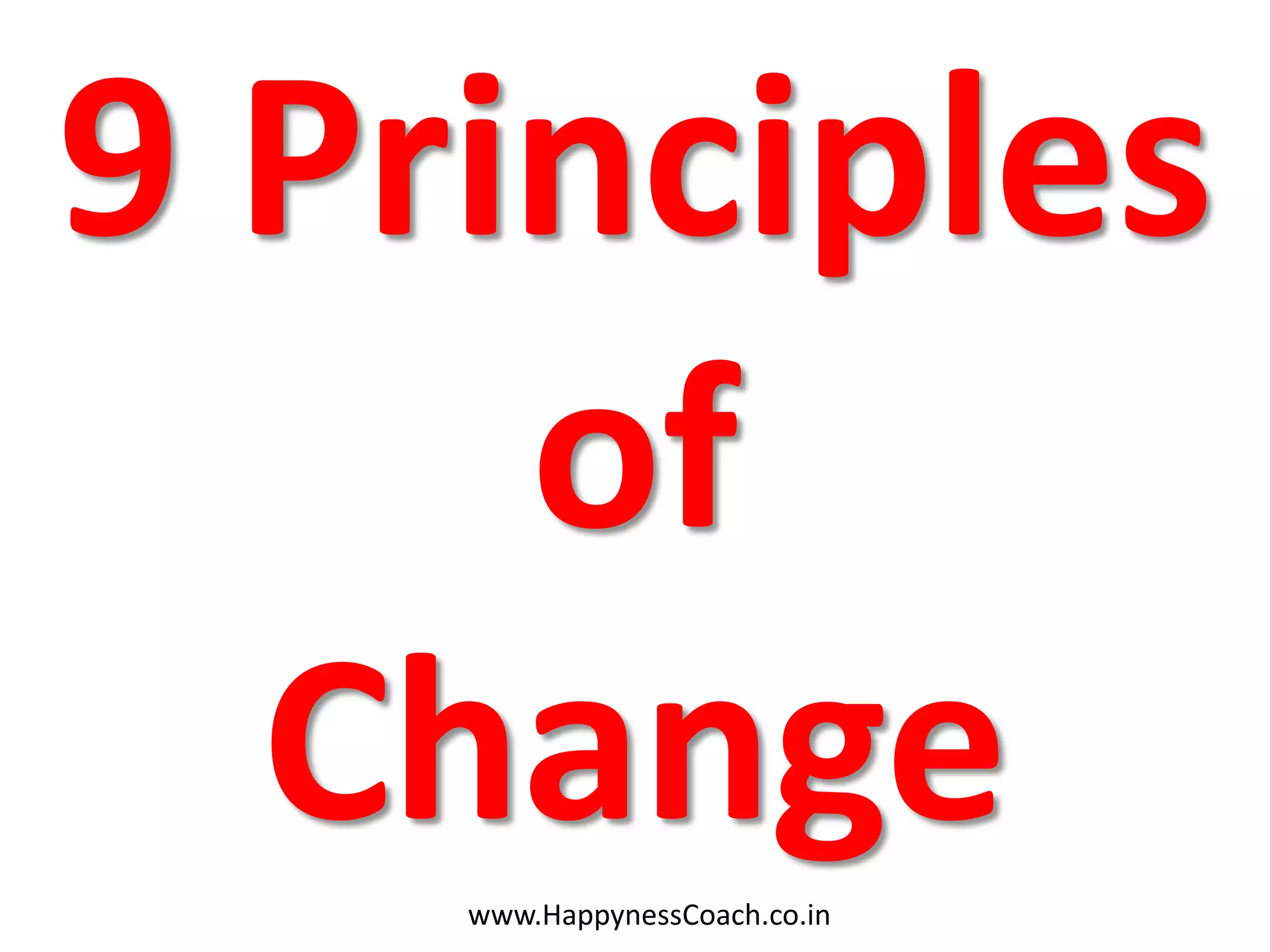 The document outlines 9 principles of successfully navigating change: 1) having positive beliefs, 2) knowing change brings positives, 3) being resilient, strong, and capable, 4) knowing challenging emotions guide to positives, 5) accepting change quicker lessens pain, 6) using empowering questions and words, 7) feeling connected to something bigger, 8) surrounding oneself with supportive people, and 9) taking action with a plan and self-care.