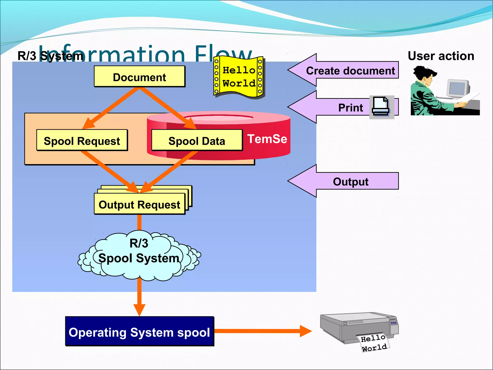 The document discusses the print and spool system in SAP. It describes the main tasks of the spool system as processing and administering print requests as well as managing output devices. It then explains the information flow from creating a document to printing. Finally, it outlines different access methods for local, remote, and frontend printing and how spool and output requests can be monitored.