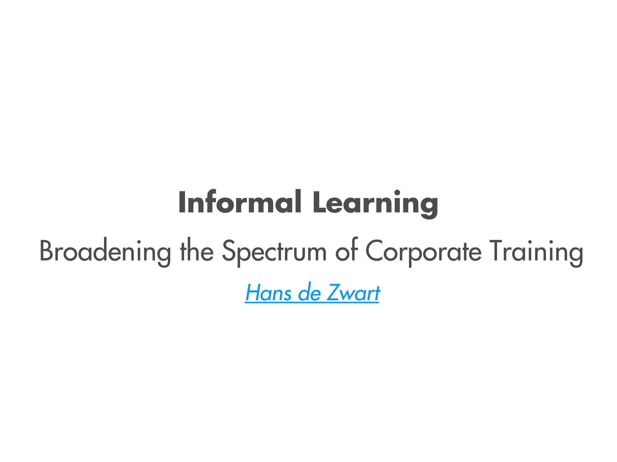 1. Informal learning and keeping the learning and development function relevant by addressing problems like the autonomous learner problem, timing problem, packaging problem, and others.