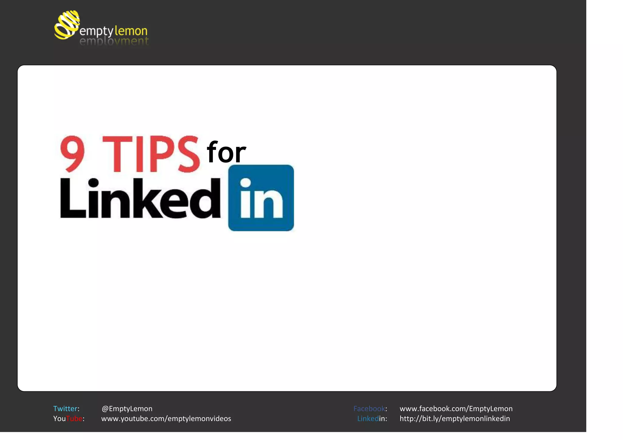 The document provides 9 steps for optimizing a LinkedIn profile: 1) Complete your profile with context for work experience; 2) Get and provide recommendations weekly; 3) Connect with contacts and invite them to link on LinkedIn; 4) Personalize your profile link; 5) Search for and add relevant groups; 6) Invite everyone you interact with to connect; 7) Promote your profile on business cards and email signatures; 8) Answer one question weekly in LinkedIn Answers; 9) Post daily, comment weekly, and add contacts regularly to get returns from your LinkedIn profile.