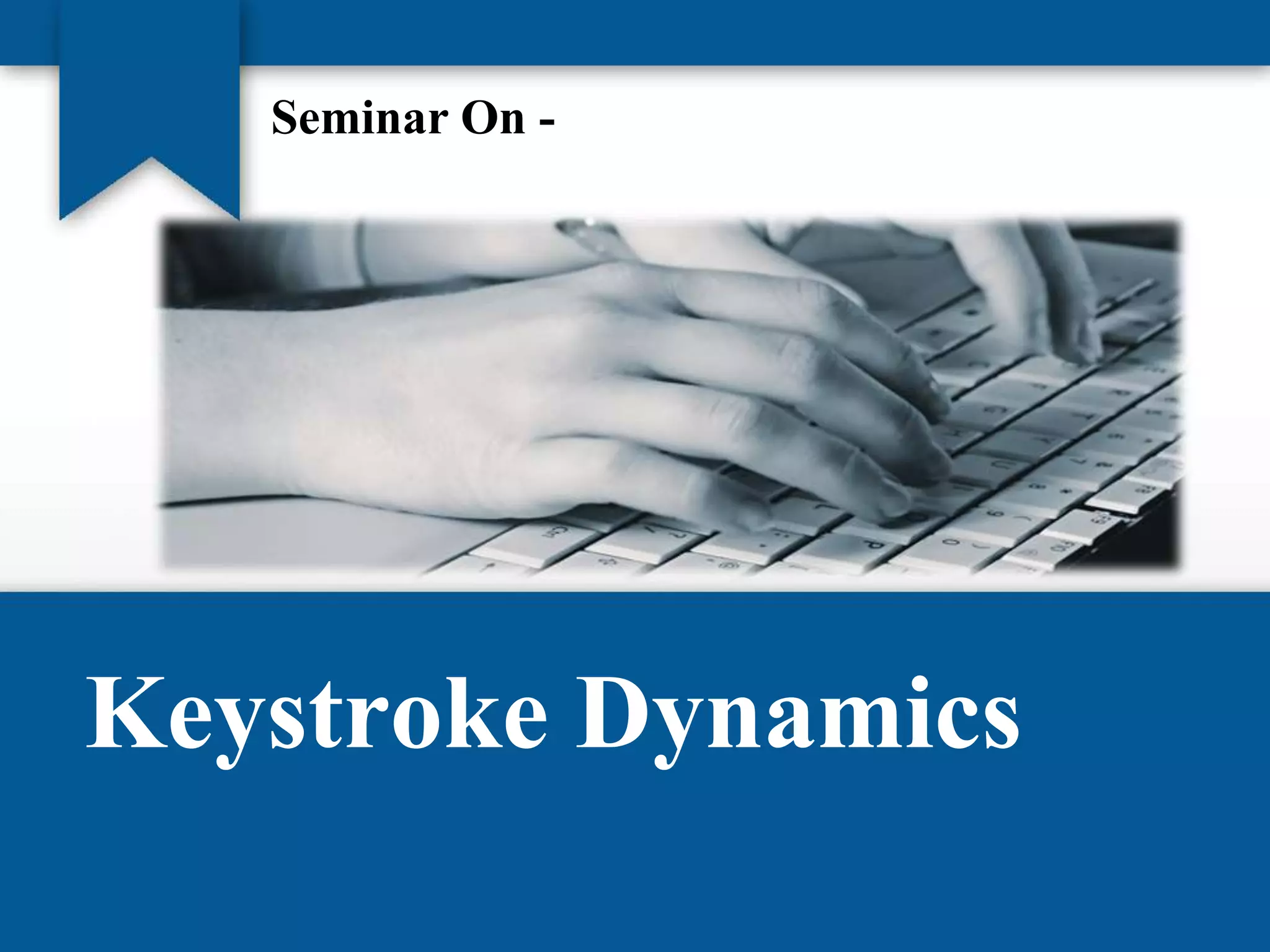 The seminar discusses keystroke dynamics as a biometric authentication method that analyzes typing patterns to verify user identity. It covers the types of biometric methods, their advantages and drawbacks, along with applications and ongoing research for more robust systems. Although promising and cost-effective, keystroke dynamics still faces challenges such as user variability and typing pattern changes.