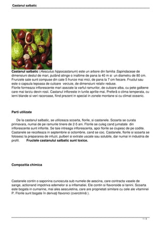 Castanul sălbatic (aesculus hippocastanum) este un arbore înalt, cu flori albe și fructe toxice, utilizat în medicina tradițională pentru tratarea afecțiunilor venoase și inflamatorii. Componentele sale active, precum aescina, au proprietăți antiinflamatorii, dar pot fi toxice dacă nu sunt administrate corect. Se recomandă utilizarea sa strict sub supravegherea unui medic, deoarece are contraindicații importante, inclusiv pentru copii, femei însărcinate și alăptând.