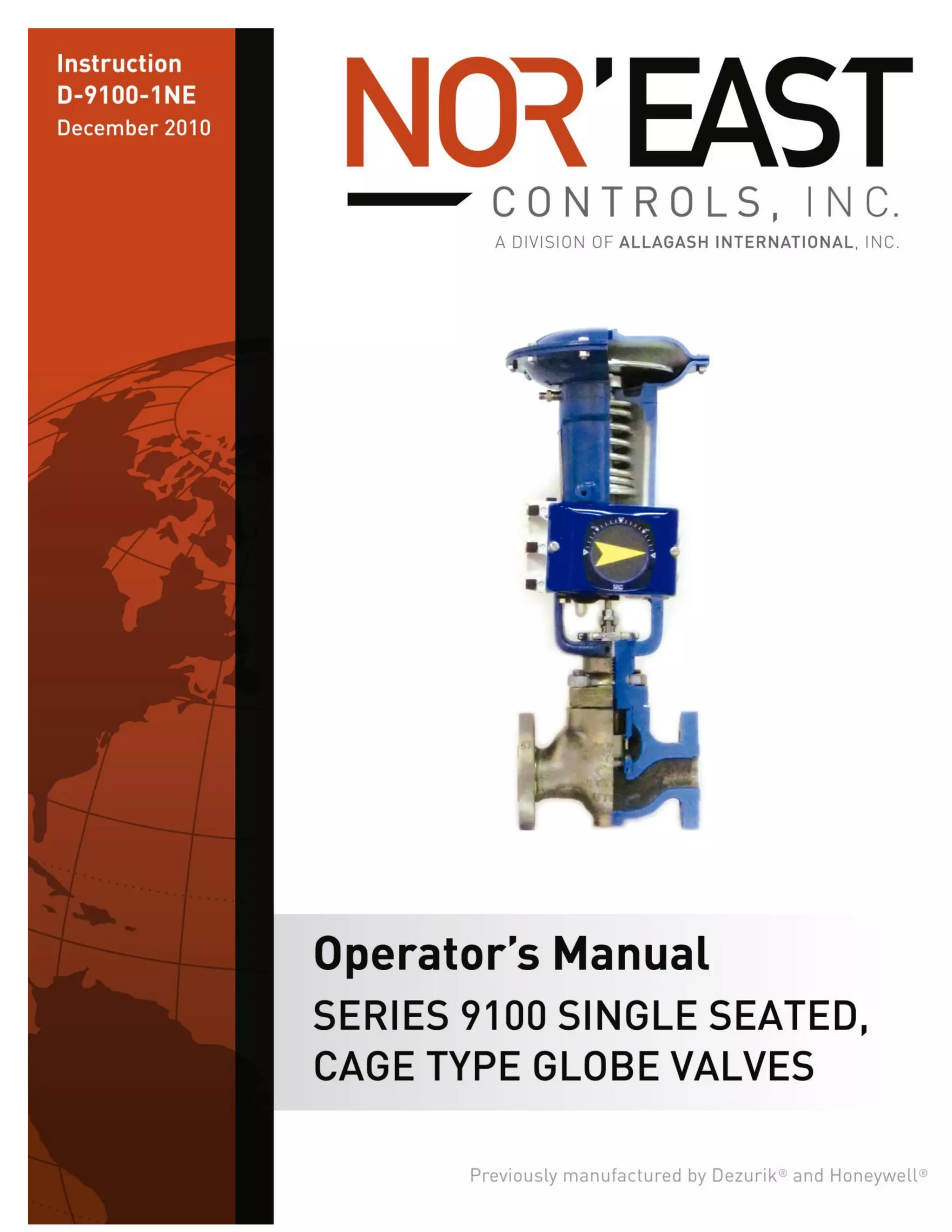 The document provides instructions for installing, maintaining, and overhauling Nor'East 1"-12" single seated cage valves. It discusses safety, inspection of parts upon arrival, ordering replacement parts, and contacting Nor'East for service. The document also includes detailed parts identification diagrams, maintenance procedures for the packing box and connections, instructions for valve overhaul including actuator removal and valve disassembly, and guidelines for reassembling the valve.