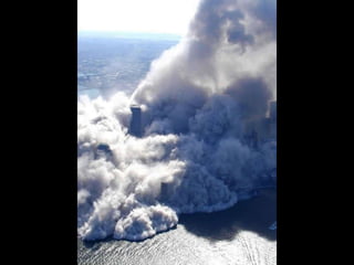 The document discusses aerial photos taken on September 11, 2001 during the terrorist attacks on the World Trade Center. The photos were likely captured from a military helicopter and contain images from 9/11 that have not been widely shared online. While some may want to forget the events, the author believes it is important to reawaken memories of that day through sharing the photos more widely.