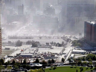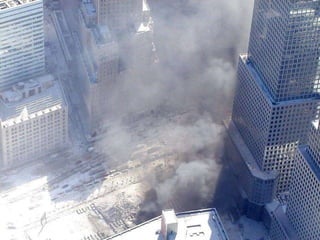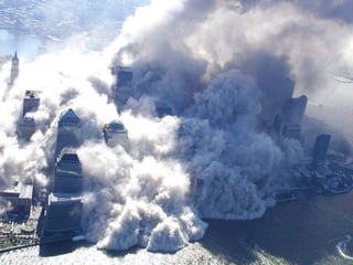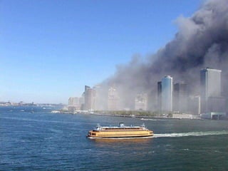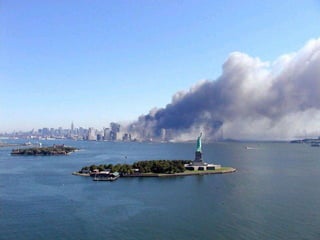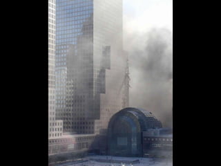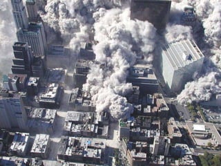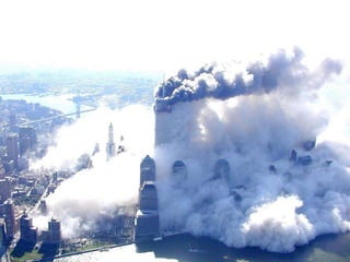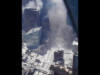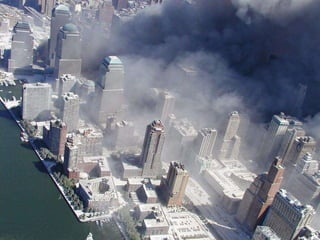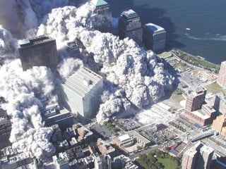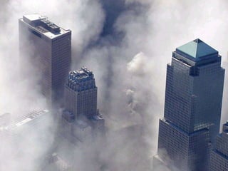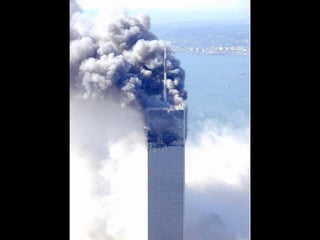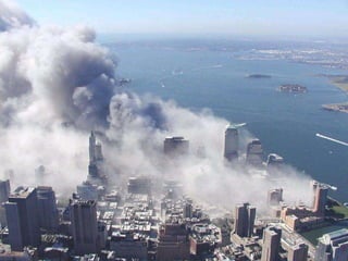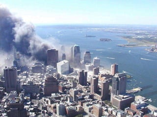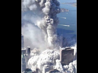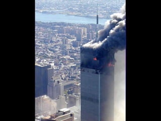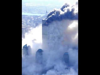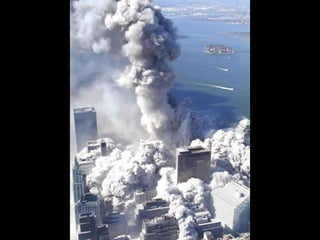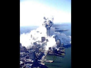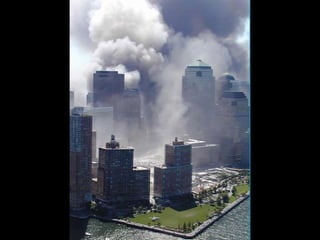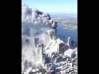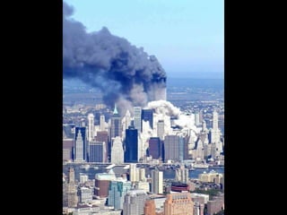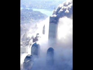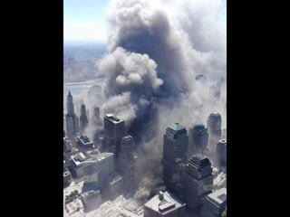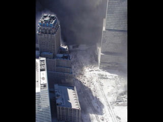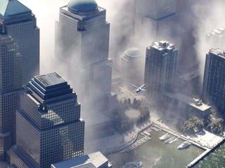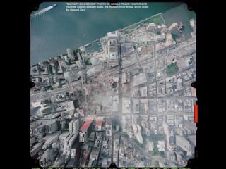 The document discusses aerial photos taken on September 11, 2001 during the terrorist attacks on the World Trade Center. The photos were likely captured from a military helicopter and contain images from 9/11 that have not been widely shared online. While some may want to forget the events, the author believes it is important to reawaken memories of that day through sharing the photos more widely.