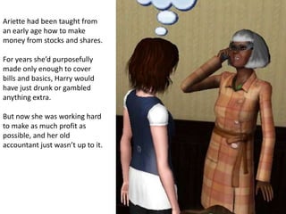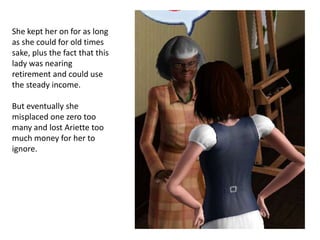 Ariette's longtime accountant had made a costly mistake by misplacing a zero, losing Ariette too much money. As a result, Ariette fired her accountant and decided she needed to find someone new to manage her finances as she works hard to increase her profits from stocks and shares.