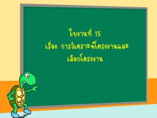 ÅíҴѺâ¤Ã§§Ò¹·Õè¹íÒÁÒÇÔà¤ÃÒÐË/¡ÒÃãËŒ¤Ðá¹¹ â¤Ã§§Ò¹ 1 à¡Á¼¨ÞÀÑ ÀÒÉÒÍѧ¡ÄÉ â¤Ã§§Ò¹ 2 â»Ãá¡ÃÁÃкº°Ò¹¢ŒÍÁÙÅ ·Ò§¡ÒÃá¾·Âàº×éͧµŒ¹ â¤Ã§§Ò¹