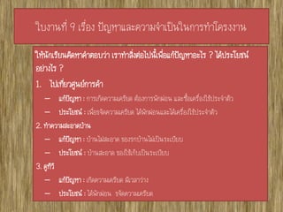 ใบงานที่ 9 เรื่องปัญหาและความจาเป็นในการทาโครงงาน
