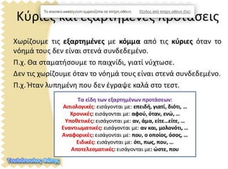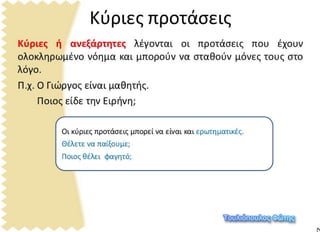 θα γίνει αναφορά στις ανεξάρτητες και εξαρτημένες προτάσεις).