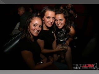 Fusion Ultra Lounge is an 18+ club open Wednesday through Sunday from 6pm to 2am with 3 full bars. The DJ starts playing at 10pm and they also serve pizza for those who get hungry. The lounge also sells Red Bull and Coke to provide energy or refreshment.