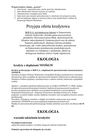 Kredyty preferencyjne w BOŚ S.A. z dopłatami do oprocentowania wnoszonymi przez