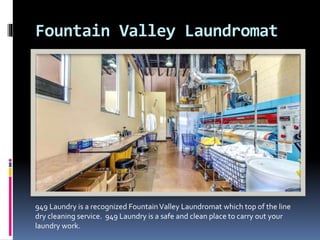 949 Laundry is a professional dry cleaning and laundry service located in Huntington Beach, offering a variety of services including fluff and fold, wash and dry. The facility provides same-day service and is known for its cleanliness and safety. Customers can contact 949 Laundry via phone or email for more information.
