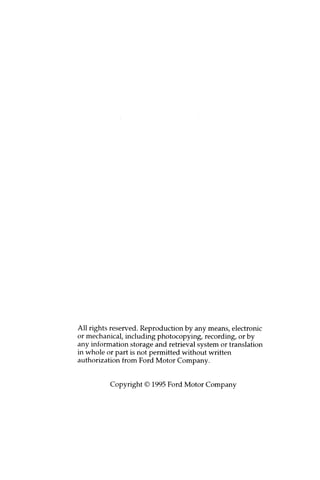 This document provides an overview and instructions for various features in a Ford Sable owner's manual. It includes sections on safety restraints like seat belts, starting the vehicle, instrument controls, driving instructions, maintenance, and more. The introduction discusses Ford's commitment to quality and customer satisfaction. It also notes that some information may not apply depending on options for the specific vehicle.