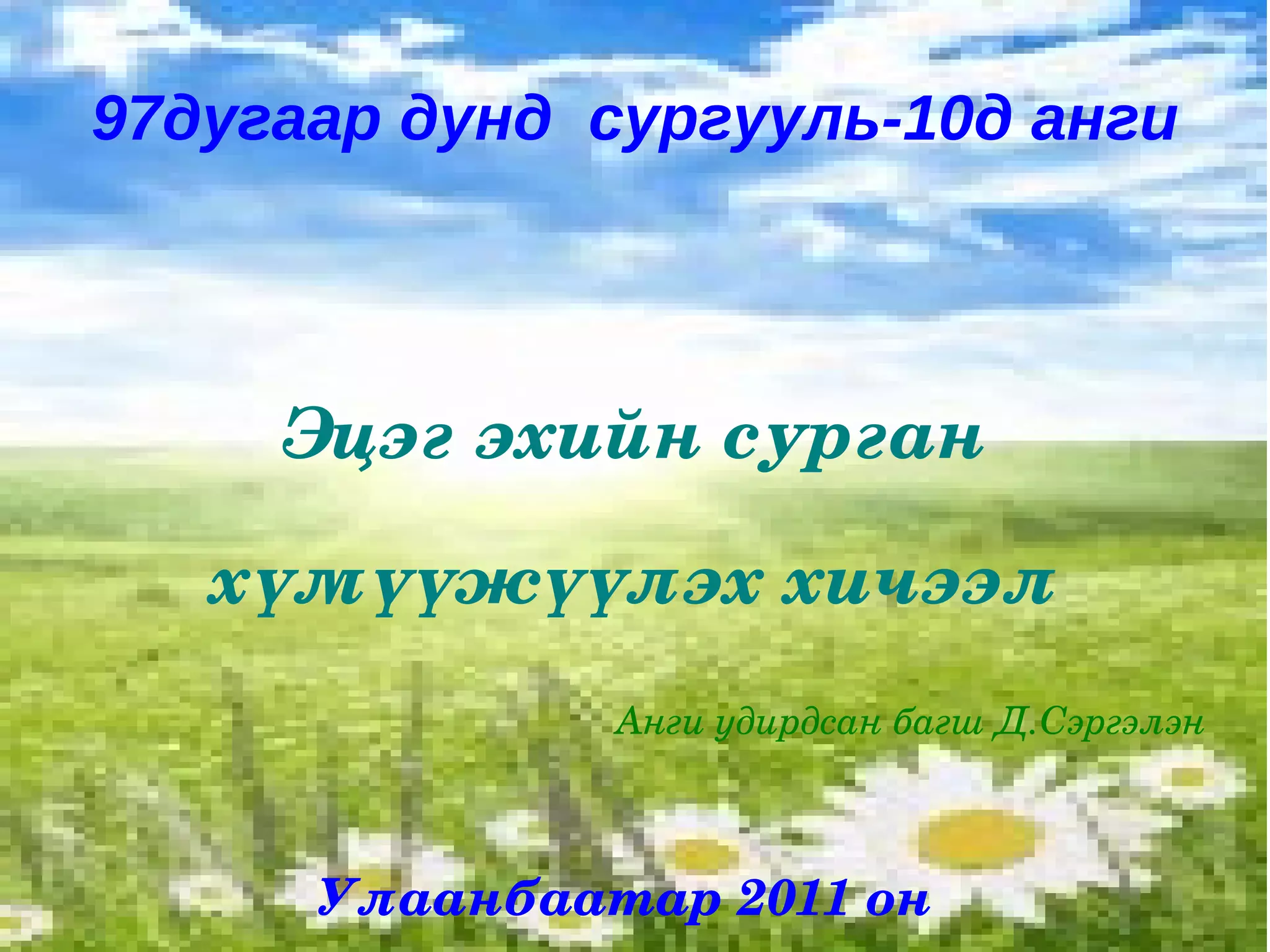 97дугаар дунд сургууль-10д анги Эцэг эхийн сурган хүмүүжүүлэх хичээл Анги удирдсан багш Д.Сэргэлэн Улаанбаатар 2011 он - 2.