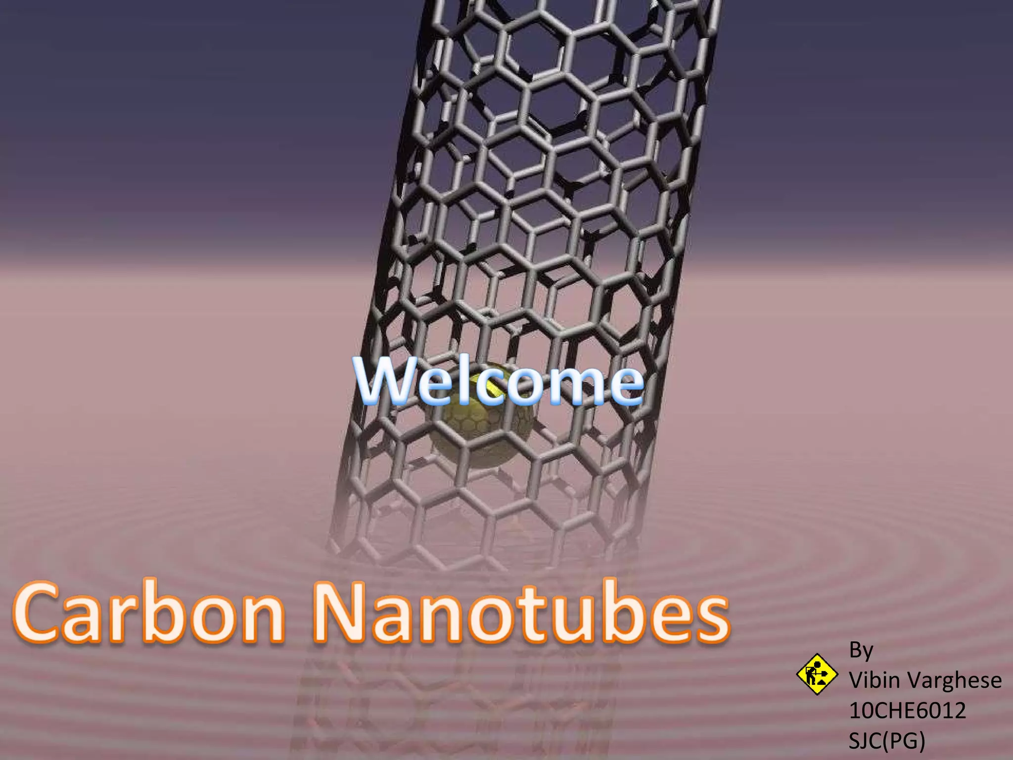 Sumio Iijima is credited with discovering carbon nanotubes in 1991. Carbon nanotubes are cylindrical structures made of carbon atoms that have unique mechanical and electrical properties. There are two main types: single-walled nanotubes and multi-walled nanotubes. Carbon nanotubes have a variety of potential applications due to their extraordinary strength, thermal conductivity, and other properties.