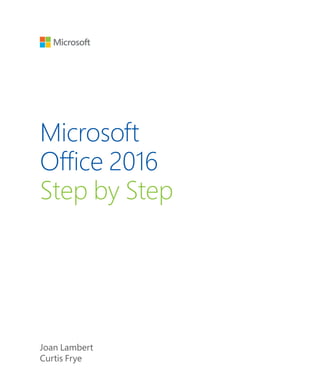 This document provides an overview of the Step by Step Microsoft Office 2016 book. It teaches the basics of Microsoft Word, Excel, PowerPoint, and Outlook through step-by-step lessons and colorful screenshots. Some key capabilities covered include formatting documents, working with workbooks for analysis, creating effective presentations, and organizing email. The book is intended for beginners and provides practice files so readers can work through the lessons.