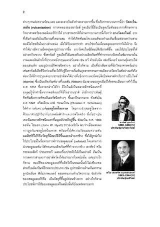 ช่วงดังนีคือ 1) ช่วงพอลิเมอร์ธรรมชาติ เช่น ยางธรรมชาติ เชลแล็ก ยางไม้ 2) ช่วงพอลิเมอร์ กึงสังเคราะห์ เช่น เซลลูโลสไนเทรต เซลลูลอยด์ 3) ช่วงพอลิเมอร์สังเคราะห์ยุคต้น เช่น เบคิไลต์ ฟีนอลิก เรยอน 4) ช่วงพอลิเมอร์สังเคราะห์เชิงพาณิชย์ หรือพอลิเมอร์ระดับอุตสาหกรรม เช่น ไนลอน เทฟลอน พอลิเอทิลีน พอลิสไตรีน พีวีซี อย่างไรก็ตาม ถึงแม้ว่าพอลิเมอร์จะมีประโยชน์มากมาย แต่ก็เป็นสิงทีก่อให้เกิดมลภาวะ ต่อสิงแวดล้อมมากมายเช่นกัน ด้วยเหตุทีพอลิเมอร์มีการสลายตัวยาก มีความทนทานต่อนํา แสงแดด และอากาศ เมือใช้งานแล้วจึงตกค้างอยู่ในสิงแวดล้อมทังในดินและนํา ดังนัน ในปัจจุบัน นักวิทยาศาสตร์จึงคิดค้นวิธีกําจัดพอลิเมอร์หรือพลาสติกทีใช้แล้ว รวมทังค้นคว้าเพือสังเคราะห์ ผลิตพอลิเมอร์ชนิดใหม่ๆ ทีสามารถใช้ประโยชน์ในช่วงระยะเวลาหนึง หลังจากนันจะเสือมสลายไป หรือสังเคราะห์พลาสติกพอลิเมอร์ทีจุลินทรีย์สามารถย่อยสลายได้ หรือพยายามนําพลาสติกกลับ มาใช้ใหม่ได้อีก เพือเป็นการลดมลภาวะต่อสิงแวดล้อม 1.2 วิทยาศาสตร์ของพอลิเมอร์ ในปัจจุบันได้มีการสังเคราะห์และผลิตพอลิเมอร์ขึนอย่างมากมาย เพือนํามาใช้ประโยชน์ อย่างจริงจัง รวมทังการผลิตในเชิงพาณิชย์ด้วย ประโยชน์การใช้งานของพอลิเมอร์เป็นไปตาม สมบัติและลักษณะของพอลิเมอร์ใน 5 ลักษณะใหญ่ๆ คือ 1) พวกพลาสติก 2) พวกรับเบอร์ 3) พวกไฟเบอร์ 4) พวกนํายาเคลือบผิว และ 5) พวกสารยึดติด (adhesives) ทําให้วัสดุติดกันได้ ในระยะแรกๆ ความรู้ในการอธิบายถึงสมบัติ และลักษณะของพอลิเมอร์แต่ละชนิดมีน้อย และไม่ค่อยเป็นทีเข้าใจกัน ทังนีเพราะขาดความรู้ความเข้าใจทางด้านเคมีพืนฐานของพอลิเมอร์ เหล่านัน สารประกอบพอลิเมอร์มีธรรมชาติและสมบัติแตกต่างจากสารอินทรีย์ทีมีมวลโมเลกุลตํา ทัวไป กล่าวคือ การทําให้พอลิเมอร์บริสุทธิ โดยวิธีการตกผลึกเป็นไปได้ยาก จึงเป็นอุปสรรคใน การศึกษาสมบัติทางกายภาพโดยทัวไป ประการสําคัญอีกอย่างหนึงก็คือสารประกอบพอลิเมอร์มี ความสามารถในการละลายตํา จนบางครังไม่สามารถละลายในตัวทําละลายใดๆ ได้ จึงเกิดเป็นสาร แขวนลอยในตัวทําละลาย และจากการหามวลโมเลกุลโดยวิธีง่ายๆ โดยอาศัยสมบัติคอลลิเกทิฟ ของสาร ผลปรากฏว่ามวลโมเลกุลทีหาได้มีค่าไม่สูงมากนัก จึงทําให้ในระยะแรกๆ นันเข้าใจว่า สารประกอบพอลิเมอร์เป็นอนุภาคคอลลอยด์ทีเกิดจากการรวมตัวของโมเลกุลเล็กๆ เป็นจํานวน มากเท่านัน จนกระทังในช่วง ค.ศ. 1920 เฮอร์มานน์ สตอดิงเจอร์ (Hermann Staudinger) [8-10] นักวิทยาศาสตร์ชาวเยอรมัน เป็นคนแรกทีเสนอสมมติฐานเกียวกับโมเ