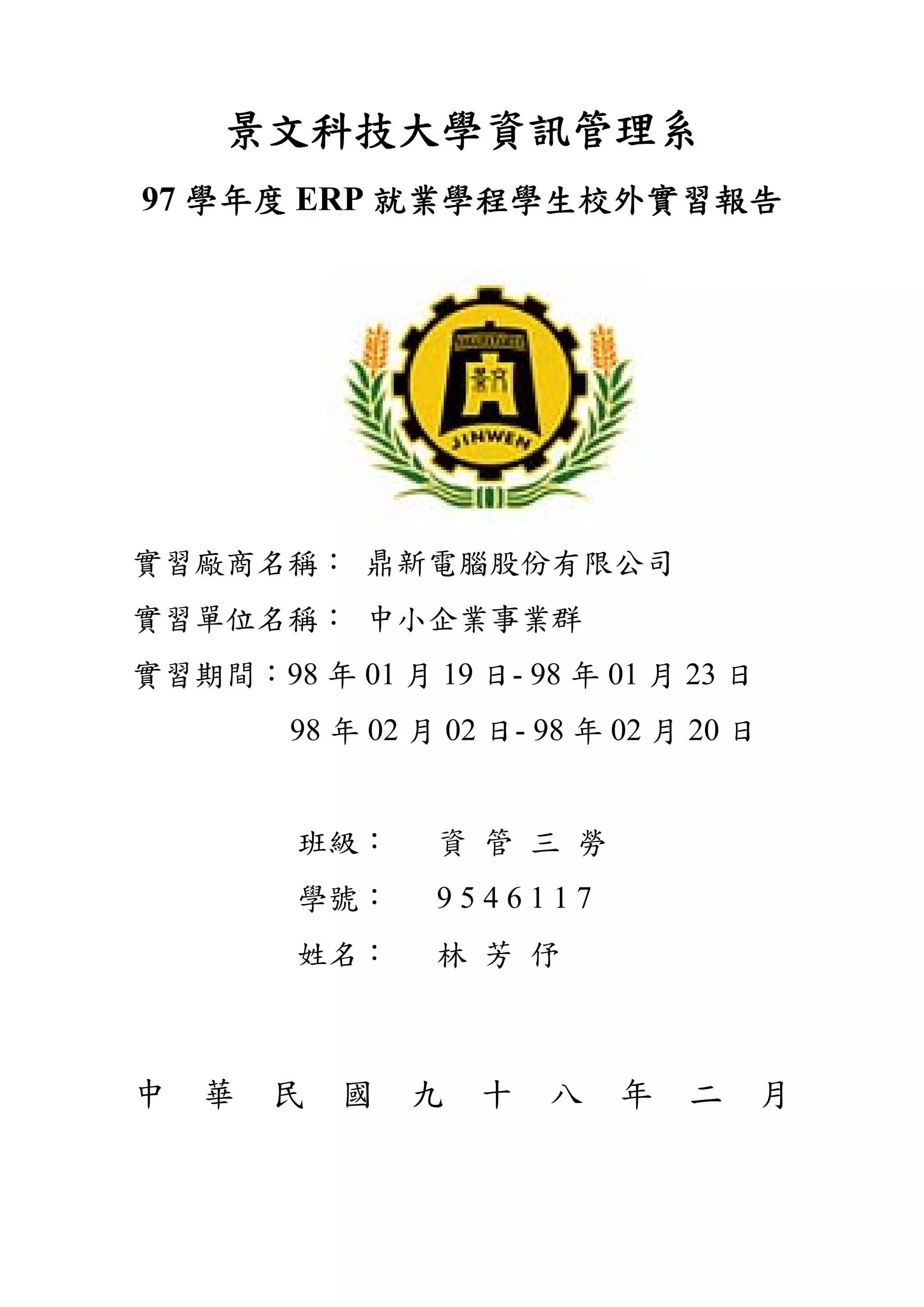 本实习报告总结了在鼎新电脑股份有限公司中小企业事业群的实习经历,介绍了公司的背景、实习期间的具体工作任务及个人反思。鼎新电脑自1982年成立以来,致力于为中小企业提供高效的ERP解决方案,并推出了具有月租模式的e-go软件服务。报告还提到了实习环境的舒适性及与同事的良好互动。
