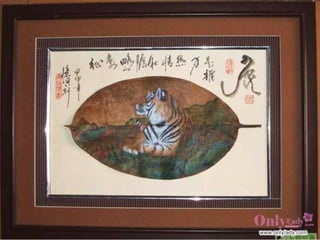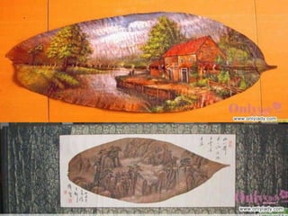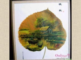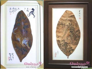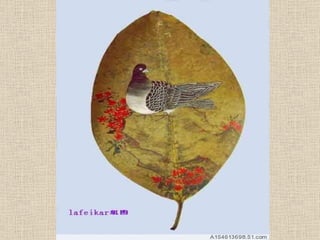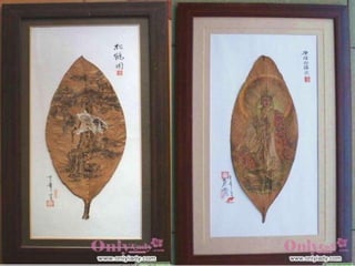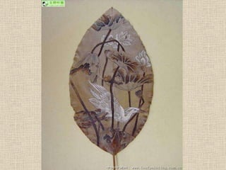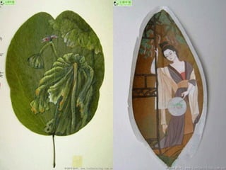 葉畫是一種結合自然與藝術的綠色藝術,以樹葉的自然形狀和特性創作,展示了畫中有葉、葉中有畫的獨特美學。這種藝術形式由劉義橋先生創立,突破了傳統繪畫的框架,創造了新的視覺效應理念。葉畫不僅是一種藝術表現,也是對生命和自然的深刻理解。