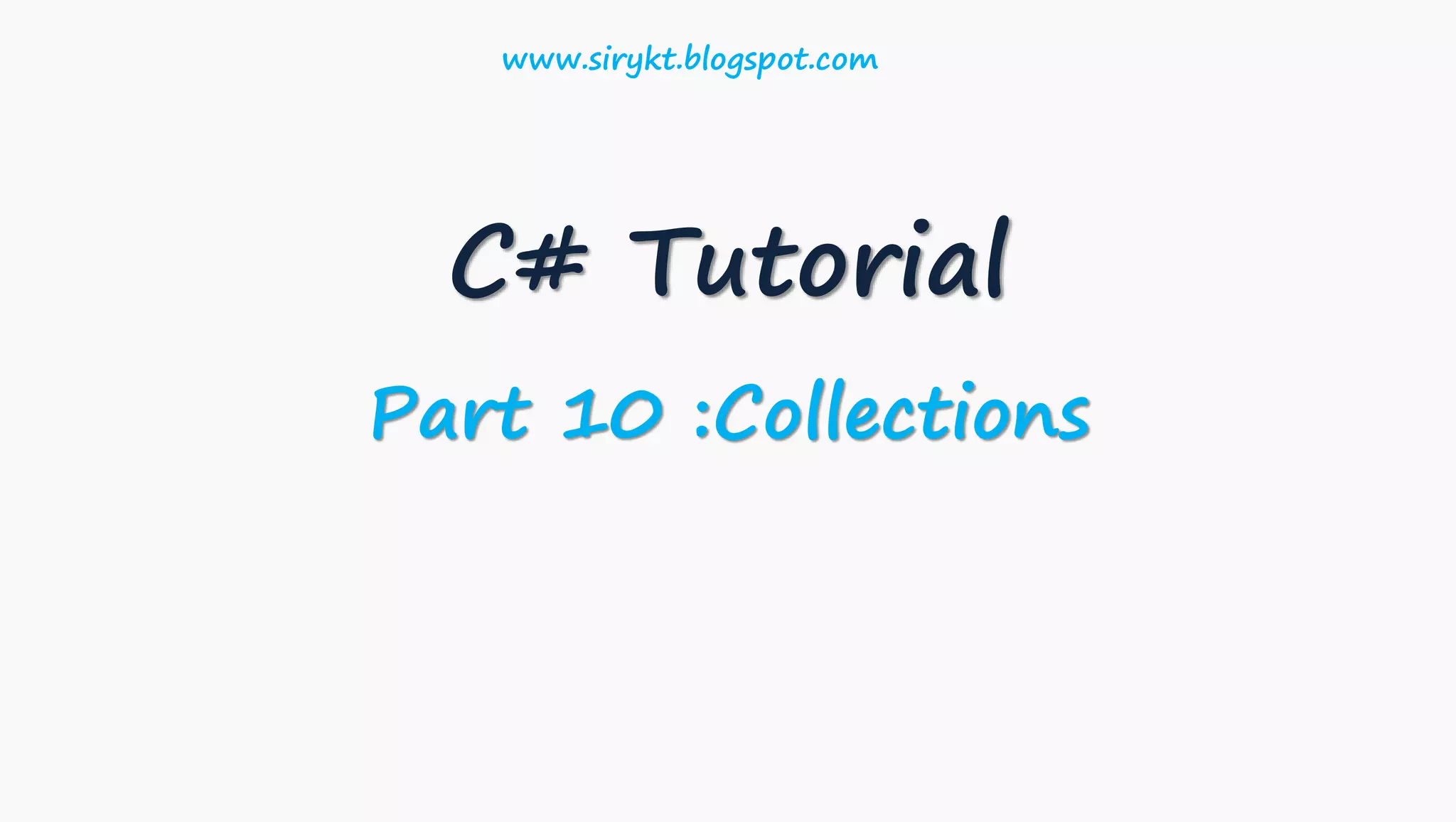 This document discusses collections in C#. It describes that collections allow storing, updating, deleting, retrieving, searching, and sorting objects. There are three main namespaces for collections: System.Collections.Generic, System.Collections, and System.Collections.Concurrent. Common collection classes include List, Stack, Queue, LinkedList, HashSet, SortedSet, Dictionary, and SortedDictionary. The document provides details on each collection class and their purposes.