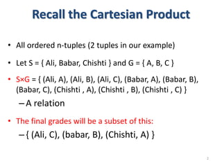 1) The document discusses functions and provides examples of different types of functions including one-to-one functions, onto functions, bijections, and inverse functions.