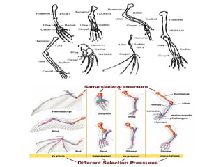 3. Evidence for evolution includes homologous and analogous structures in different species as well as the fossil record showing changes over time.