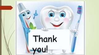 Dental plaque is a soft biofilm that forms on teeth and consists of bacteria, salivary components, and food debris. It is classified as supragingival or subgingival plaque. Disclosing agents are used to make plaque visible and help with patient education and evaluation of oral hygiene techniques. Mechanical methods of plaque removal include toothbrushing and various interdental cleaning aids like floss and interdental brushes. Proper brushing technique and use of fluoride toothpaste promotes effective plaque removal.