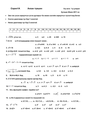 Сорил3А Ахисан түвшин 9-р анги 1-р улирал