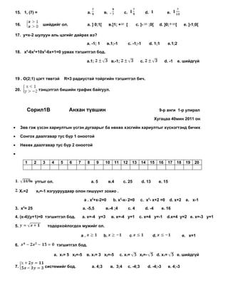 a. -1 ; в с. d. 1;-4 e. шийдгүй19 .