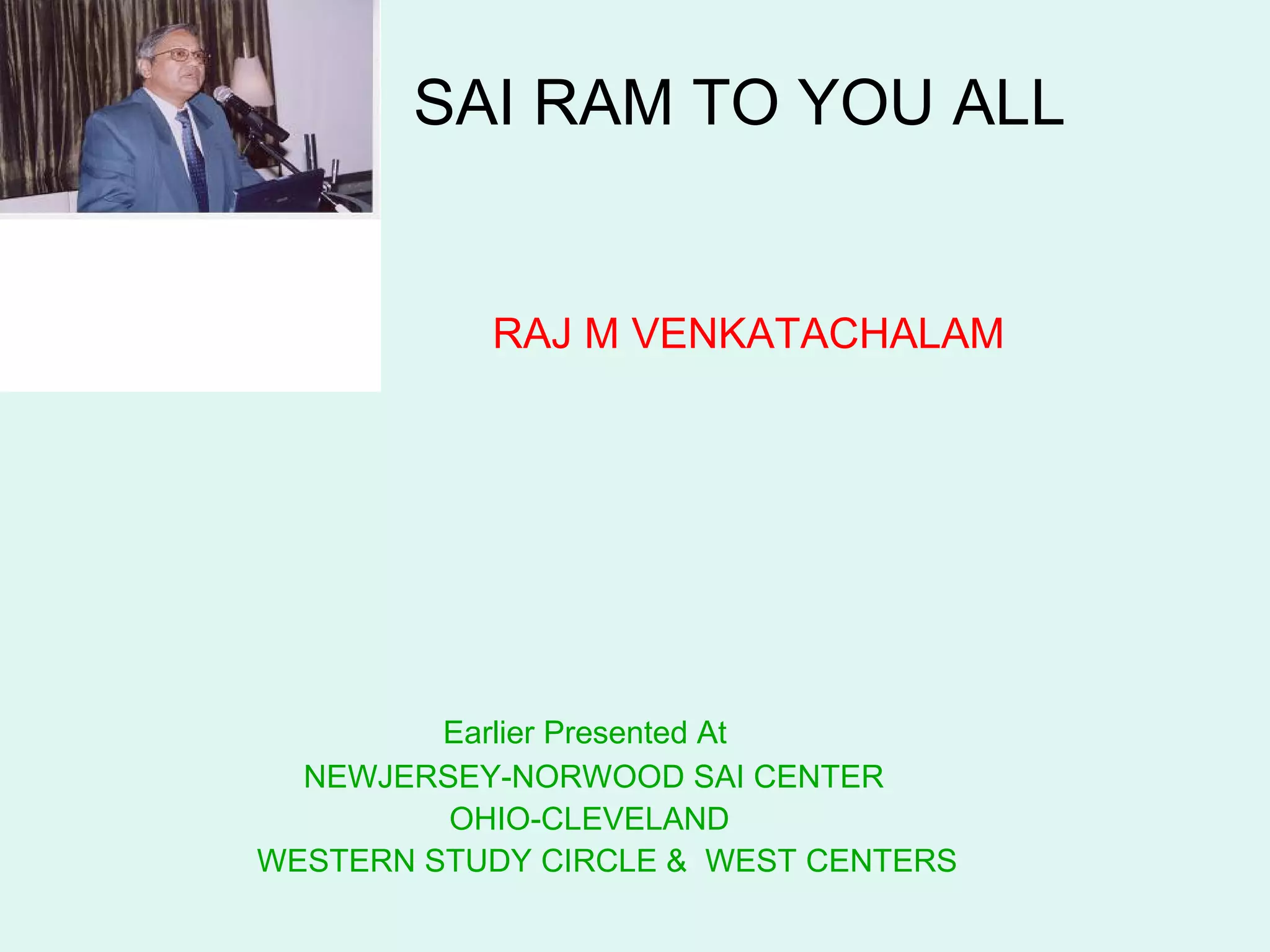 The document discusses the spiritual journey and teachings of Sai Baba, emphasizing the importance of understanding the self and the interconnectedness of body, mind, and soul. It highlights the transformative power of selfless service, stating that true devotion manifests through love and serving others, as well as the need for individuals to align their actions with values such as truth, righteousness, and peace. Overall, it advocates for community service as the highest form of sadhana, encouraging readers to experience joy and pain empathetically with others to achieve spiritual growth.