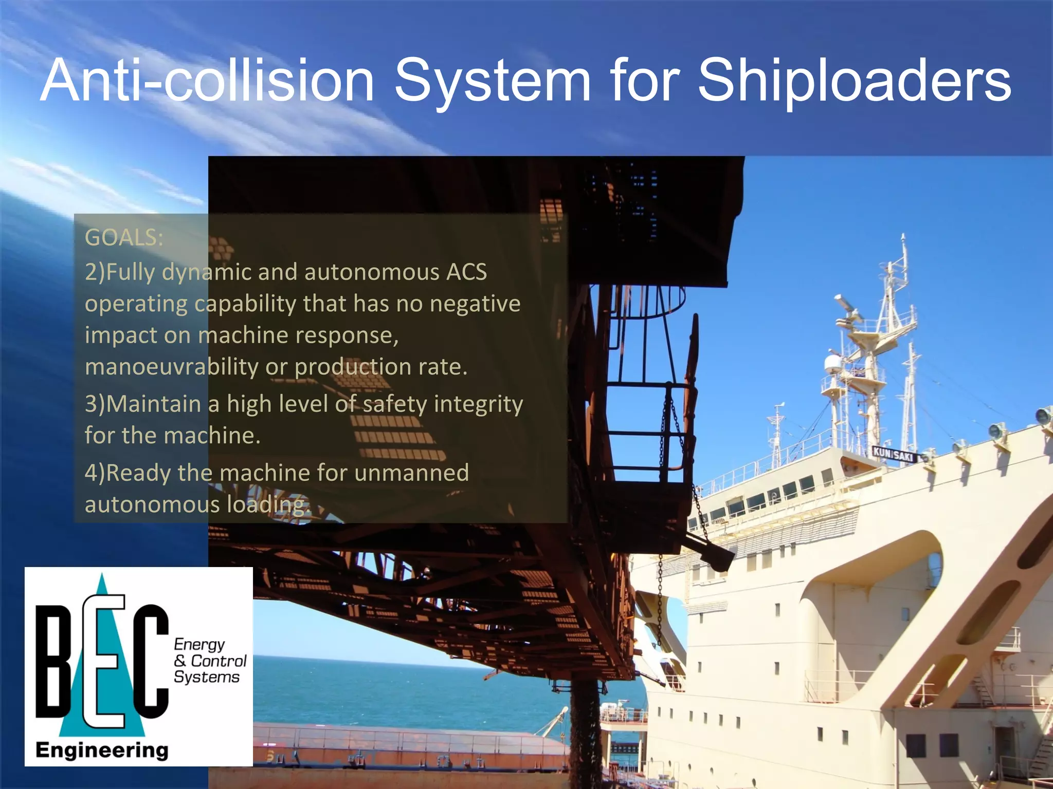 1) Provide fully dynamic and autonomous protection for the shiploader boom from collisions with the ship, wharf, and other moving objects.