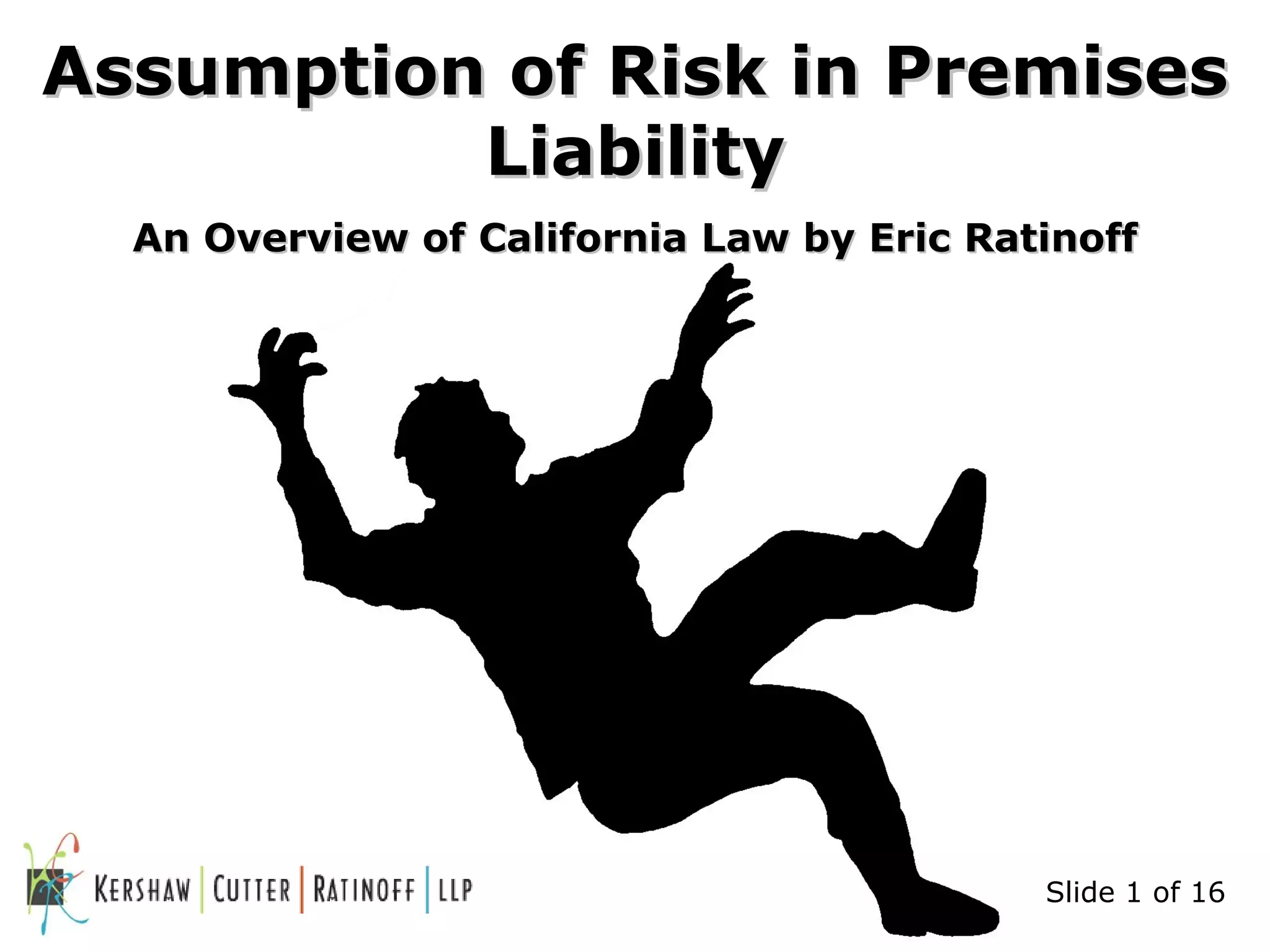 This document discusses the legal doctrine of assumption of risk in California premises liability law. It provides an overview of key cases that established the primary and secondary assumption of risk categories. Primary assumption of risk applies when a plaintiff knows of an inherent risk and consents to relieve the defendant of their duty of care. Secondary assumption of risk applies when a plaintiff voluntarily encounters a known risk created by the defendant's negligence.