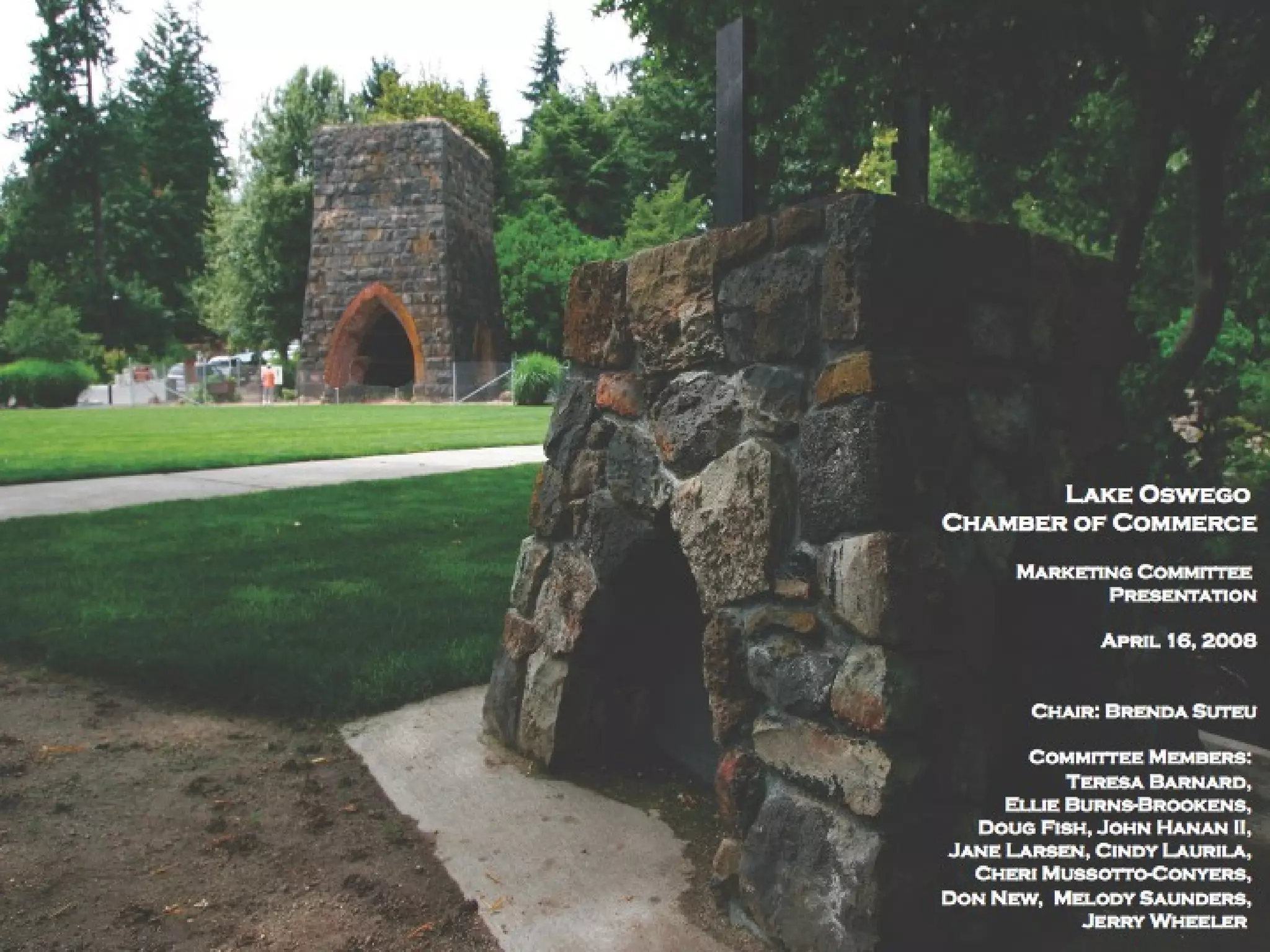 The document contains a list of various photos, graphics, surveys, and presentations related to branding, websites, and education. It includes photos of Brenda and the furnace, a branding graph, surveys on typography and graphic treatments, sketches, photos of George Rogers and the old furnace, a rendered logo, logo sizing guidelines, a newsletter, and multiple presentations about websites and education. It also includes photos of the board and a funny photo of Jerry.