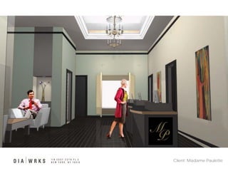 This document contains notes for various projects from 2005-2009 including education, administration, hotels, boutique residences, commercial spaces, private residences, real estate development, sustainability studies, and spa/gym facilities. It lists clients such as Madame Paulette, the Law Firm of Yvegeny Tsyngauz, the Brauss Organization, and Green RESIDENCE. Specific projects mentioned are the Green Beginnings Academy, a fashion showroom prototype and renovation, the Lexington Hotel proposal, the confidential Missoni Hotel, facade and lobby studies, and the NYIT administrative office relaunch.