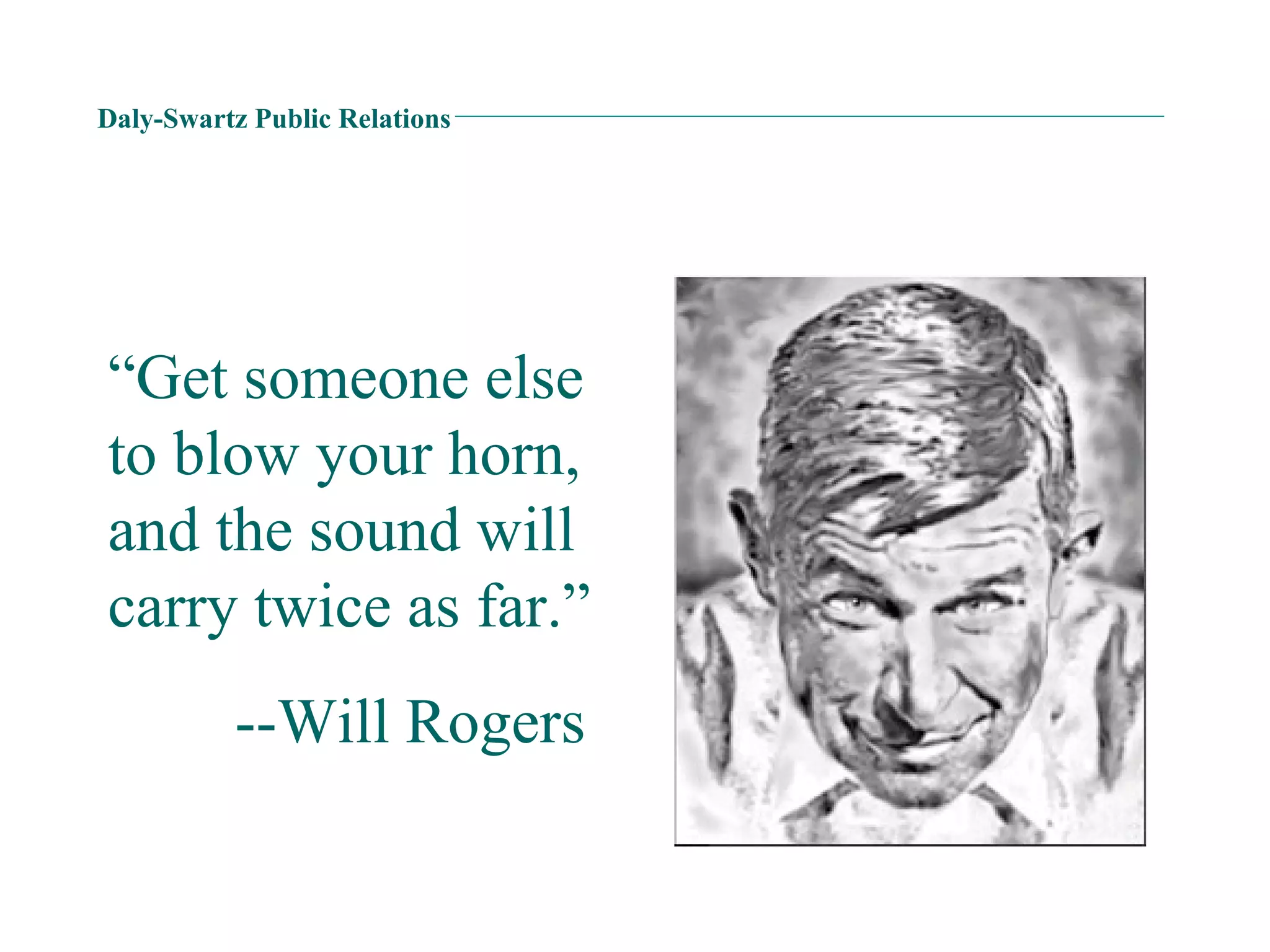The document is an advertisement for Daly-Swartz Public Relations, a marketing communications company. It promotes their services such as public relations, advertising, media relations and event planning. It emphasizes their personal approach and ability to help clients achieve their marketing goals through effective communications that drive sales.