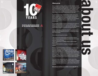Detail Design & Fabrication is a full-service design and fabrication studio that transforms ideas into captivating visual realities. They specialize in signage, exhibits, trade show booths, and custom environments for a variety of clients. Their services include conceptual design, fabrication, large format printing, and installation. They take pride in their award-winning, innovative work and reputation for exceeding client expectations.