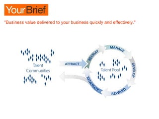 The document discusses the significance of effective talent acquisition and management in enhancing business performance, emphasizing that talent is more valuable than capital. It highlights the challenges faced in traditional recruitment methods and suggests an agile, candidate-focused approach using social networking and improved processes to address these issues. Key performance indicators for successful acquisition include reduced time and cost per hire, improved employer branding, and sustained business growth.