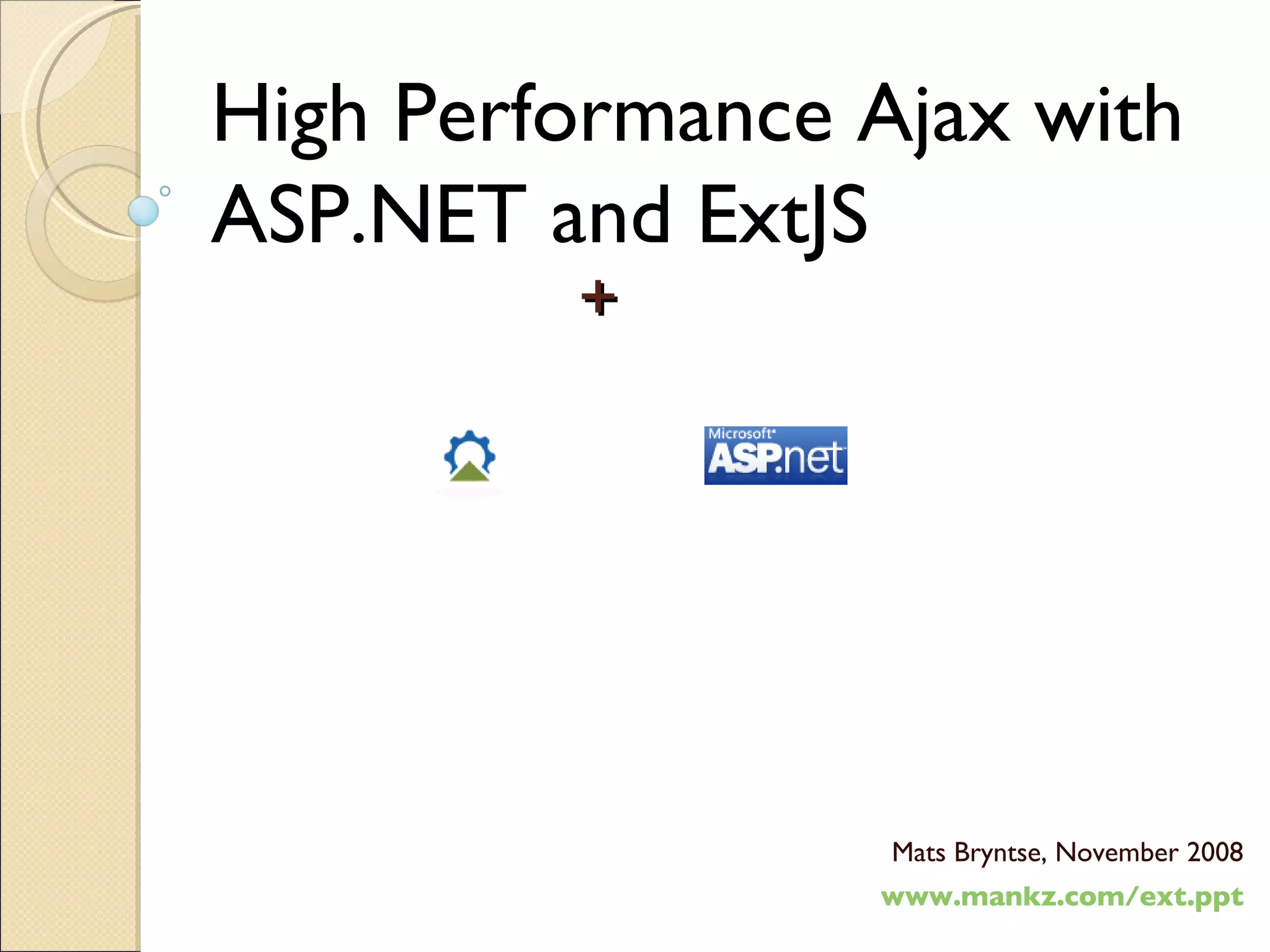 This document provides an overview and introduction to using ExtJS with ASP.NET for building high performance AJAX applications. It covers setting up Visual Studio for JavaScript development, debugging techniques, an introduction to ExtJS, examples of ExtJS components like grids and form panels, handling errors, and tips for optimizing AJAX performance.