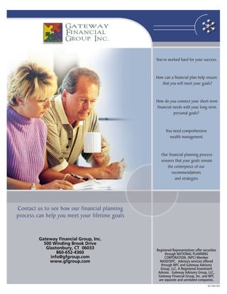 A financial planning company discusses how their process can help clients meet both short-term needs and long-term goals through comprehensive wealth management and ensuring the client's goals remain central to any recommendations or strategies. They invite contacting them to learn how their planning process achieves lifetime goals for success and financial security.
