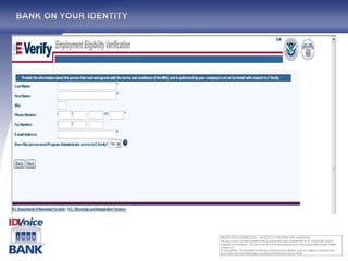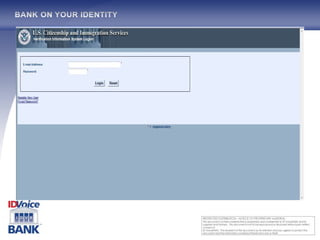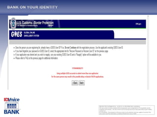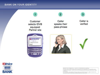The document outlines the One Voice TM technology, which encompasses a patented real-time biometric voice identity management system capable of automating authentication processes through voice recognition. Founded in 2002 and backed by major credit companies, this service aims to facilitate secure and efficient transactions while reducing fraud and identity theft. It highlights the system's ease of use and language independence, targeting diverse markets with its extensive voice identity database and integration capabilities.