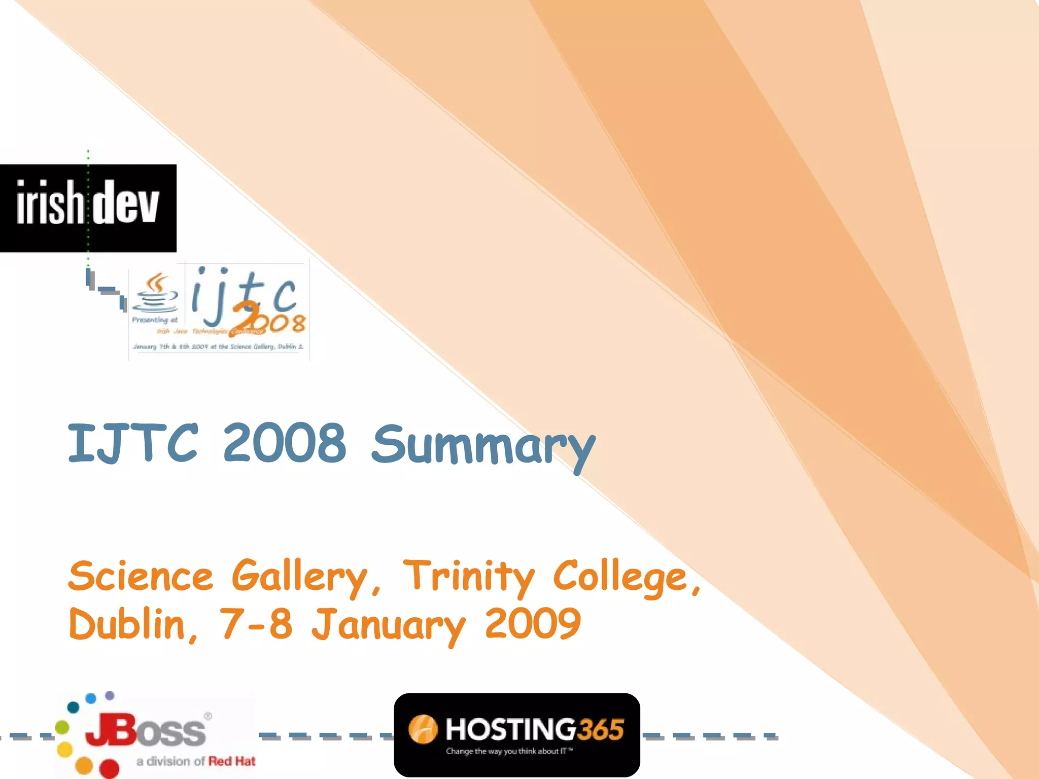The document summarizes talks from a technology conference on versatile Java and dynamic languages. It discusses projects from Sun/Oracle like the Multilanguage VM and InvokeDynamic for improving performance of dynamic languages on the JVM. It also mentions frameworks and tools like JRuby, Groovy, Spring, JavaFX, Drools, and cloud computing platforms.
