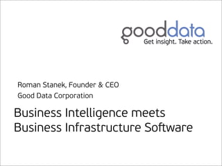 This document discusses an on-demand business intelligence (BI) solution called Good Data that aims to address common issues with traditional BI implementations. It provides multi-tenant BI delivered as a set of services, allowing for instant provisioning of BI projects/reports, managed data and analytics, and strict project isolation. This on-demand approach is claimed to provide simplicity through intuitive user environments and self-service, flexibility to support business changes and real-time reporting, collaboration through commenting and report distribution, ability to embed and mash reports across systems, and lower risks through quick proof-of-concepts without upfront costs.