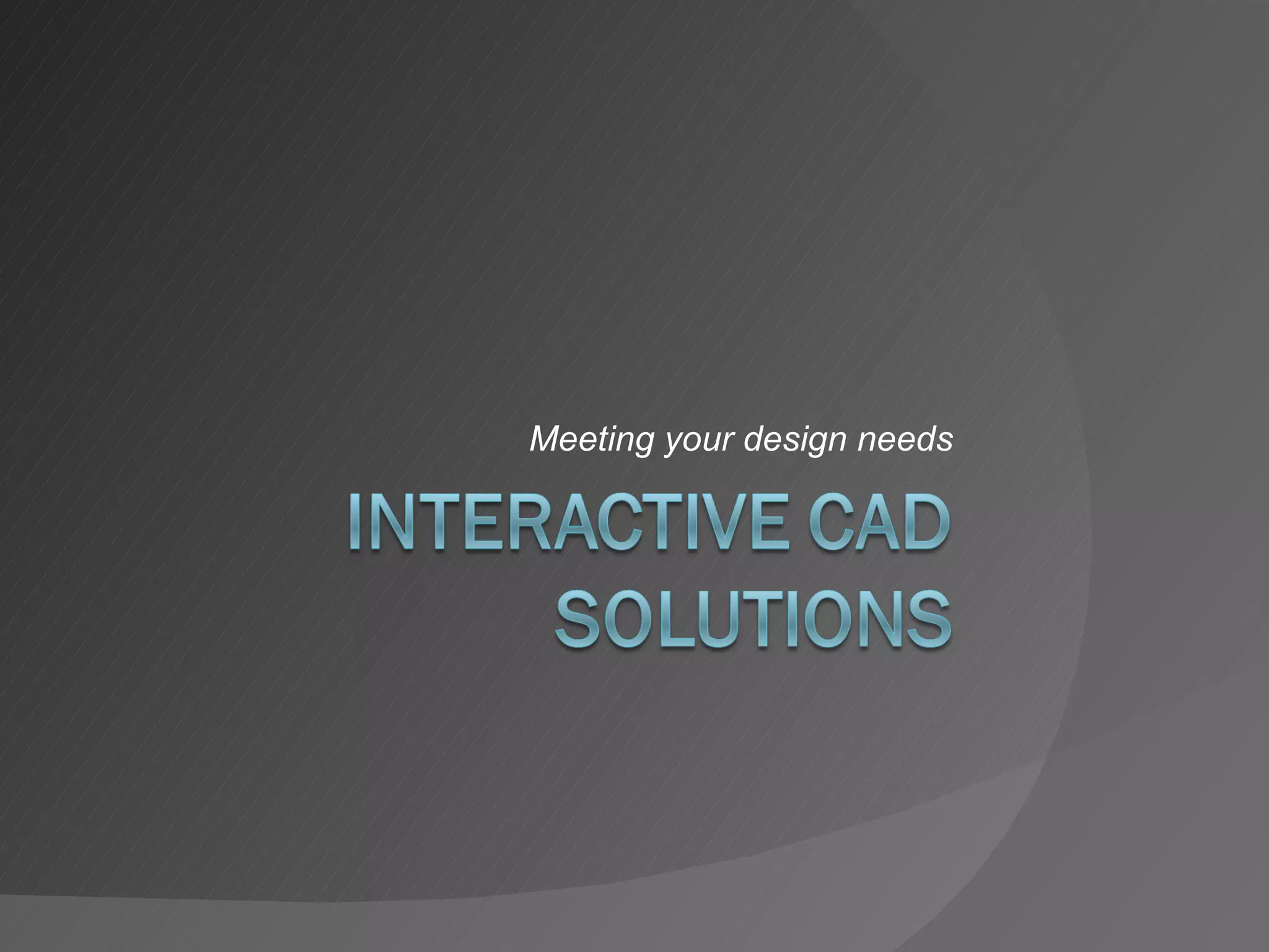 Interactive Cad Solutions provides mechanical engineering design services including 3D modeling, drafting, detailing, rapid prototyping, and reverse engineering. They work with both small businesses and large corporations to help turn designs into functional products quickly. Their CAD services include file translation, parametric 3D modeling, simulation, and finite element analysis to optimize designs. They also offer rapid prototyping using stereolithography to produce physical models directly from 3D CAD files.