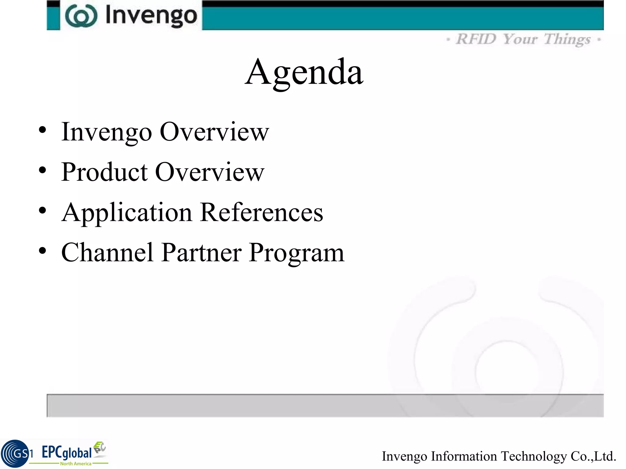 Invengo is a Chinese company founded in 1993 that is the largest RFID company in Southeast Asia. It provides RFID hardware, software, and services for supply chain management, asset tracking, and transportation applications. Some of its major customers include China Railway and China Mobile. It offers a variety of passive UHF RFID tags and readers that are compatible with EPC Gen 2 standards and can reliably read tags in noisy environments.