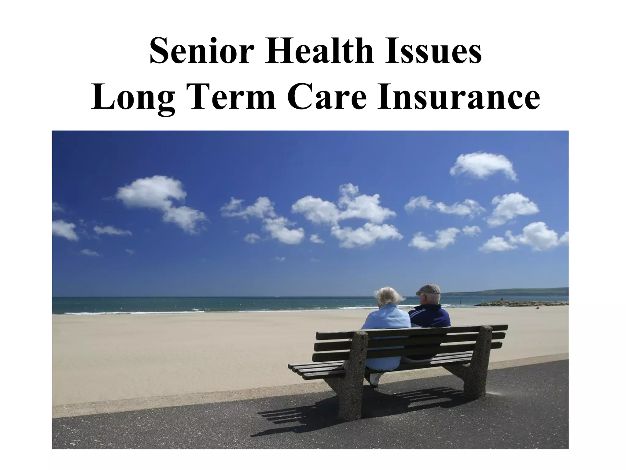 This document provides an overview of senior health issues related to long-term care insurance. It defines long-term care and different levels of care, explains how long-term care insurance policies work including benefits, options, and consumer protections. It discusses who is likely to need long-term care based on age and health factors, and options for paying for care including Medicaid, selling one's home, life insurance policies, and continuing care retirement communities.
