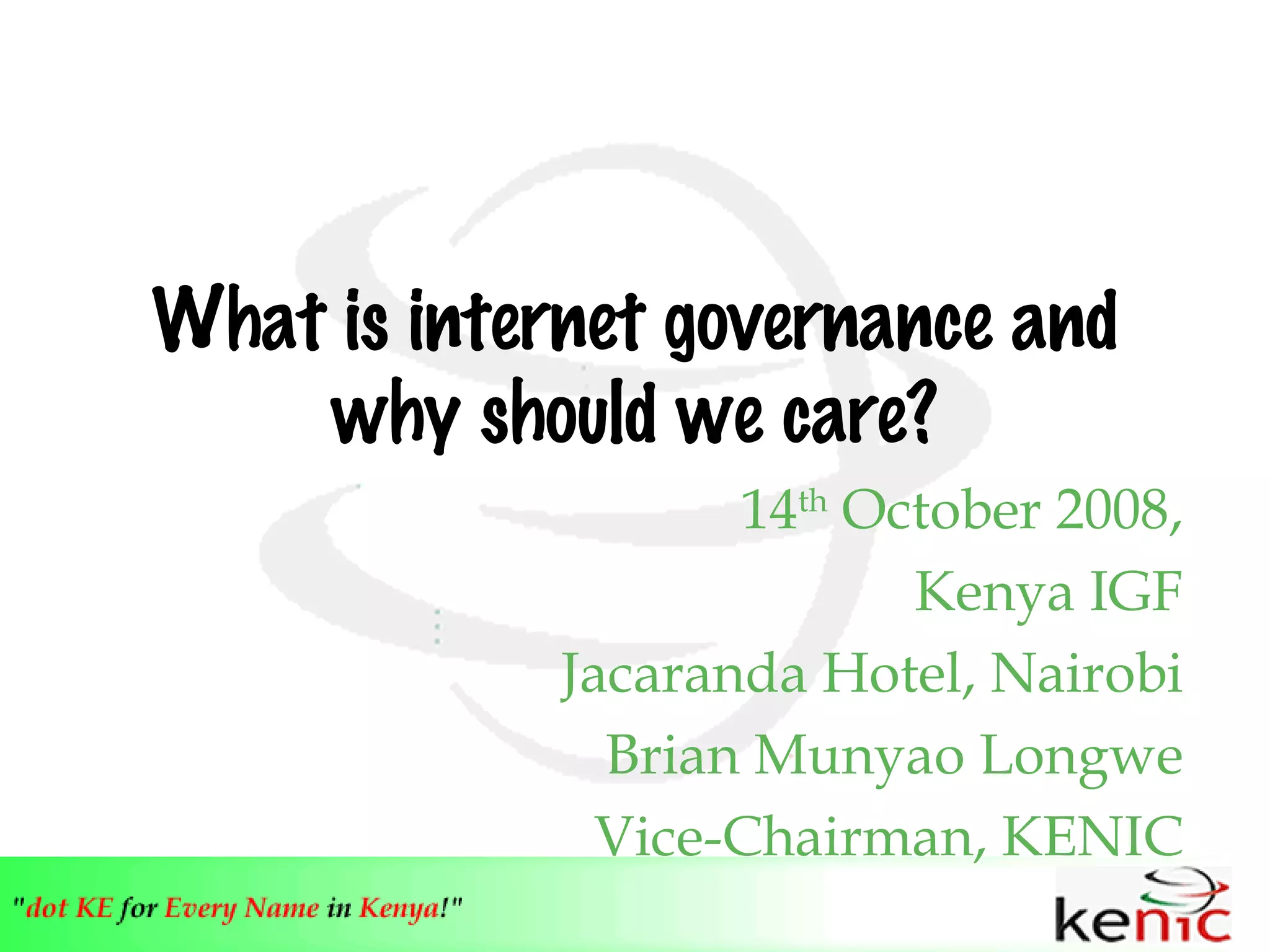 The document discusses internet governance and the origins of the Internet Governance Forum. It describes internet governance as a complex issue like describing an elephant where different stakeholders can describe different parts. The document also notes the importance of inclusive, multistakeholder internet governance that addresses issues like equitable access, security, and development.