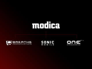 Breathe specializes in web solutions for government and corporate clients, including online strategy, design, development and mobile sites. OneSquared provides infrastructure solutions like data centers, networks and ISP products. Sonic Mobile operates globally in mobile advertising, marketing, infrastructure and custom solutions through a single web platform.