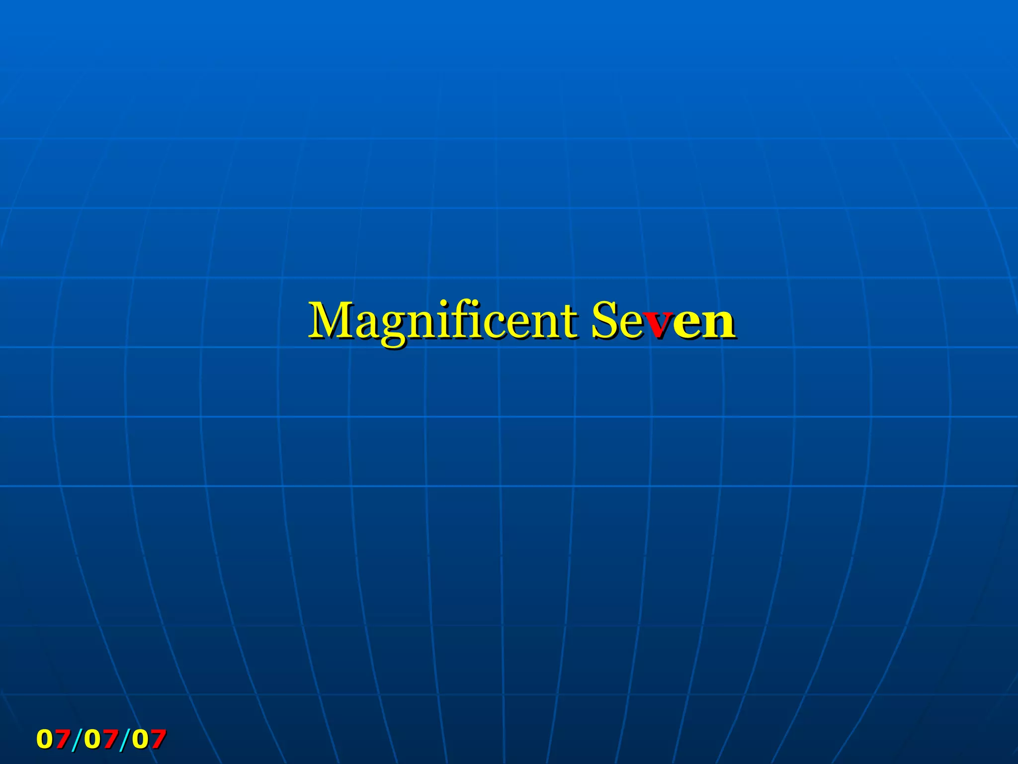 The document discusses the significance of the number 7 in various contexts including religion, mathematics, science, and the Quran. It provides over 50 examples of sevens found in nature, numbers, the Islamic faith, and the Quranic text. Key points include the 7 days in a week, colors in a rainbow, layers of the earth, and mentions of the number 7 in the Quran such as the 7 verse surah Al-Fatiha.